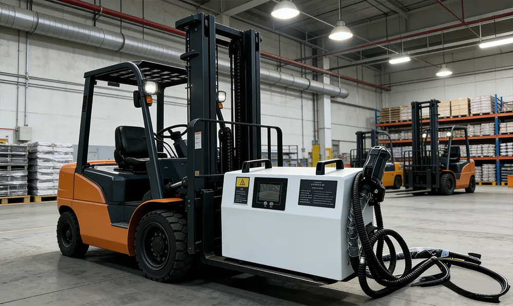 Персонализирано за голяма логистична група в Южна Корея. Повече от 1000 изнесени единици, съвместими с Hyundai, KION и други масови марки.