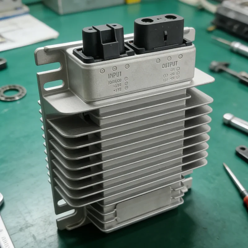 Основната му функция е да преобразува постоянен ток с високо напрежение от акумулатора на превозното средство в стабилен постоянен ток с ниско напрежение, захранващ инструменти, светлини, клаксони, контролери и други спомагателни електрически системи.