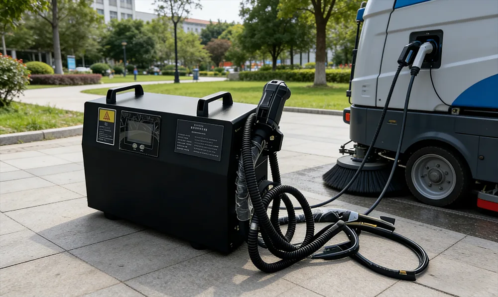 За да отговори на нуждите от високочестотна работа на открито на електрически мотокари и почистващо оборудване, той е оборудван с IP41 прахоустойчива и водоустойчива обвивка, за да устои на дъжд, сняг и прах. Лекото тяло от алуминиева сплав тежи само 55 кг, 18% по-леко от конкурентите, което го прави лесно за преместване и разгръщане.
