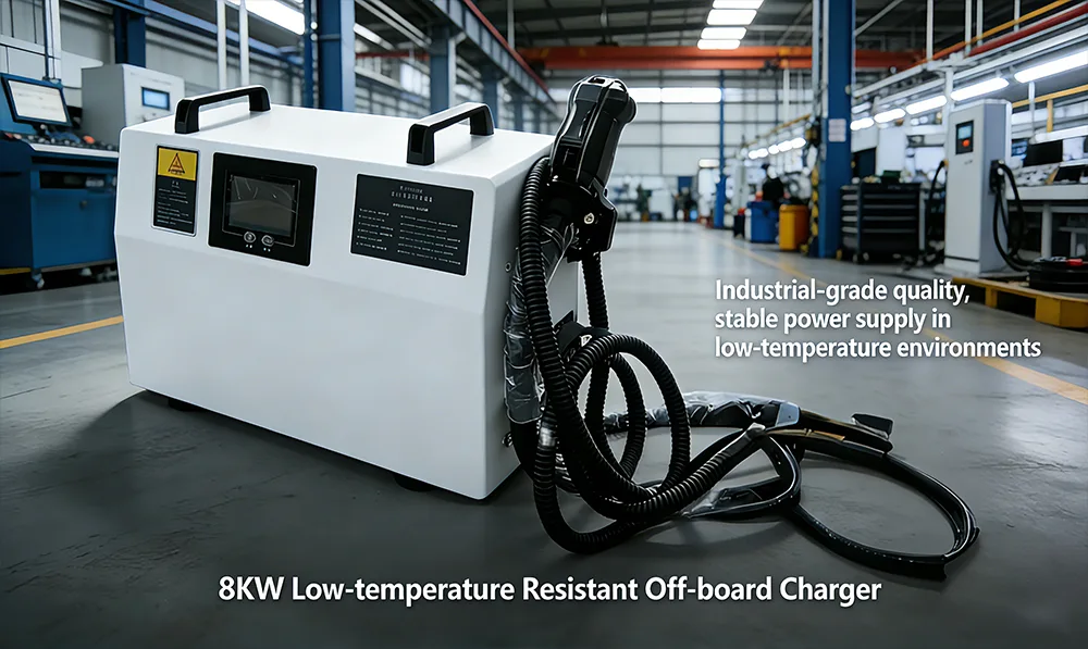Извънбордовото зарядно устройство с мощност 8KW, устойчиво на ниска температура, е независимо устройство за зареждане с висока мощност, специално проектирано за среда с ниска температура. Неговата основна функция е да преобразува трифазно променливотоково захранване в стабилно постоянен ток, ефективно зареждайки захранващите батерии на индустриално оборудване като електрически мотокари и стакери.
